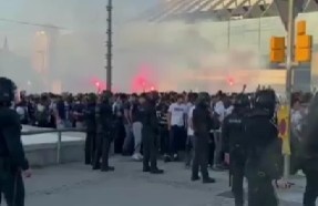 巴薩巴黎大戰(zhàn)一觸即發(fā)!大批巴黎球迷在球場前聚集并呼喊口號