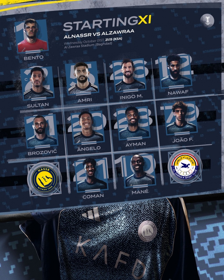 10月2日訊 北京時(shí)間凌晨2點(diǎn)15分,亞冠二級(jí)小組賽D組第2輪,利雅得勝利客場(chǎng)對(duì)陣伊拉克球隊(duì)扎瓦拉體育,賽前利雅得勝利公布了首發(fā)陣容,C羅迎來(lái)輪休,菲利克斯、科曼先發(fā),馬內(nèi)出戰(zhàn)。